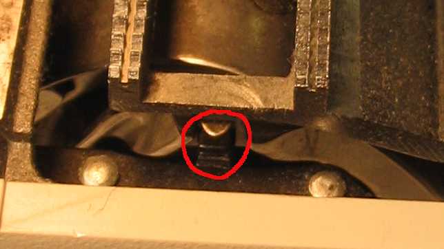 A closeup of the problem area. The red circle indicates where the thread buildup occurred.
